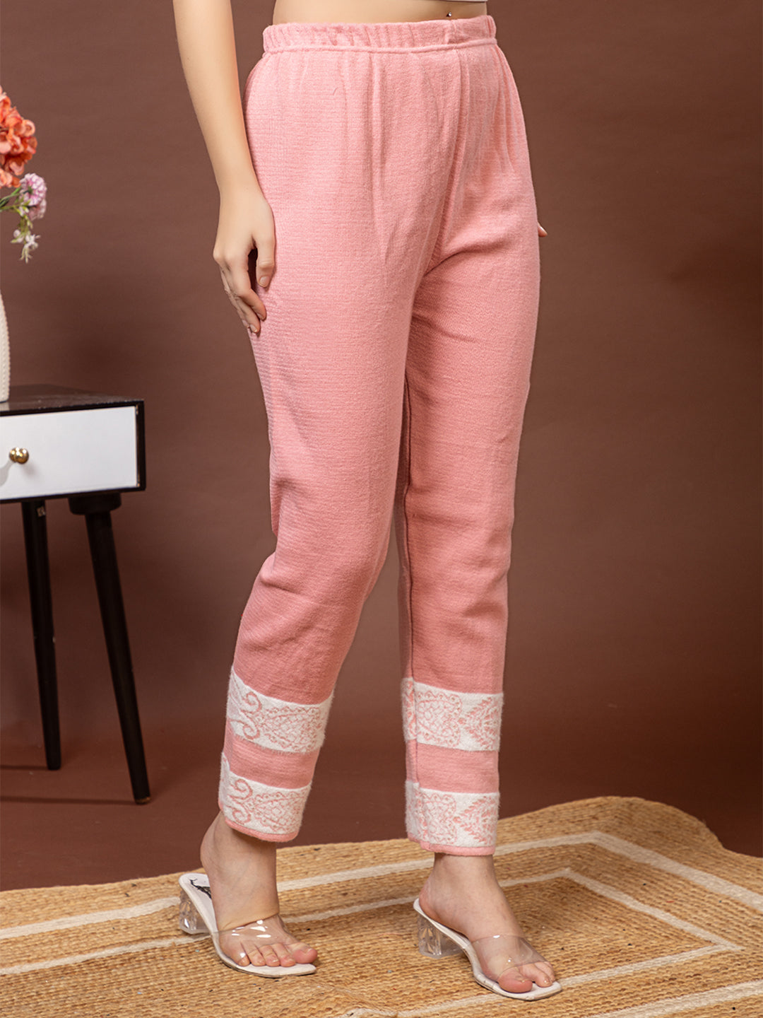 The kurta features a round neckline, full sleeves, and a straight cut that ensures both comfort and style. The matching bottom is crafted with coordinated embroidery at the hem, making it a complete and graceful outfit. Perfect for festive occasions, casual gatherings, and winter outings, this set keeps you stylish and cozy at the same time.