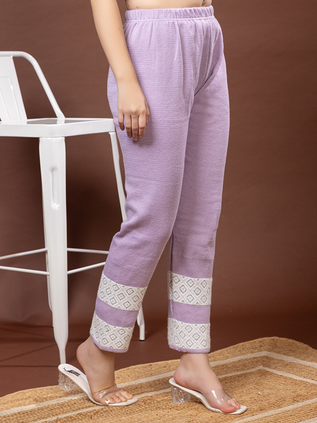 Elevate your winter wardrobe with this elegant women’s woolen kurta set with dupatta. Crafted in a soft pastel shade, the set features a beautifully embroidered kurta with intricate white patterns on the yoke and sleeves. Designed with a straight-cut silhouette and full sleeves, it ensures both warmth and style. The matching pants come with coordinated embroidery at the hem, while the textured woolen dupatta completes the sophisticated look. Perfect for festive occasions, family gatherings, or casual outings, this outfit blends comfort with timeless ethnic charm.